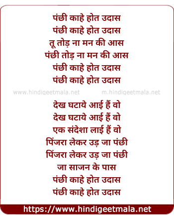Lyrics of Panchi Re Kahe Hot Udas - पंछी रे काहे होत उदास