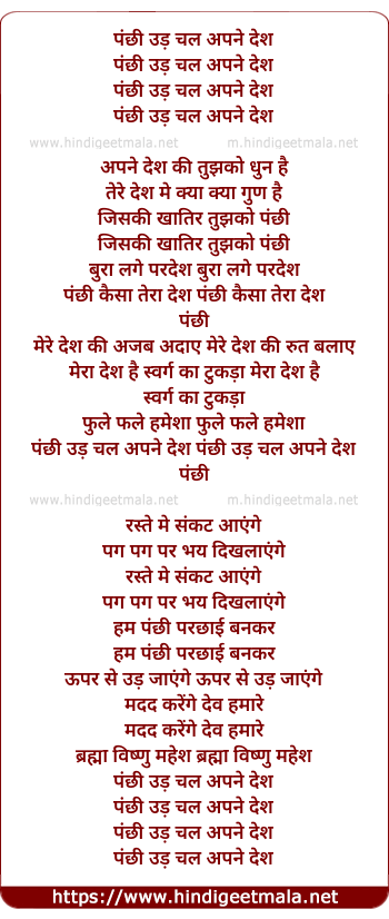 Lyrics of Panchi Ud Chal Apne Desh - पंछी उड़ चल अपने देश