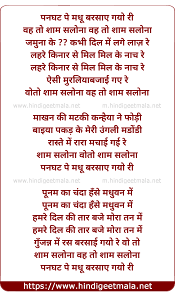 Lyrics of Panghat Pe Madhu Barsaye Gayo Ri - पनघट पे मधू बरसाए गयो री