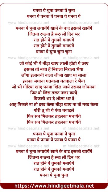 Lyrics of Panwa Pe Chuna Lagayenge (Remix) - पनवा पे चुना पनवा पे चुना