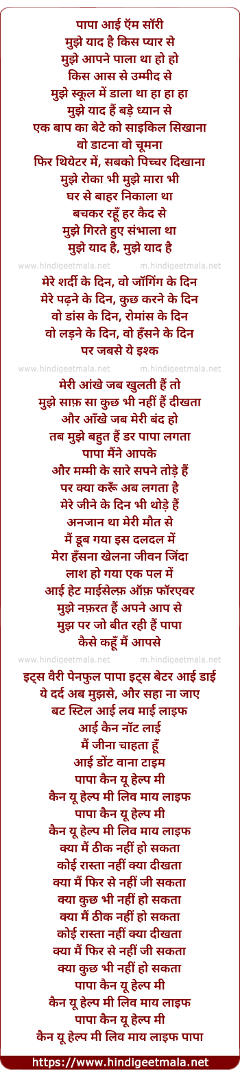 Lyrics of Papa I Am Sorry - पापा आई ऍम सॉरी