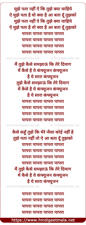 Lyrics of Papara - मुझे पता नहीं ऐ कि तुझे क्या चाहिये