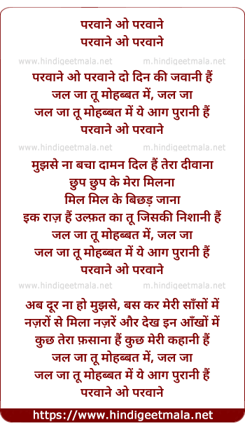 Lyrics of Paravaane O Paravaane Do Din Ki Javaani Hai - परवाने ओ परवाने दो दिन की जवानी है