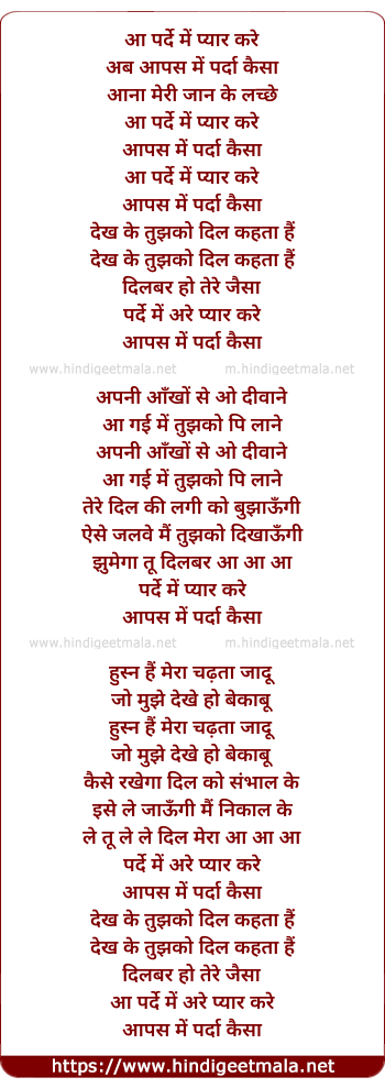 Lyrics of Parde Me Pyar Kare - पर्दे में प्यार करे