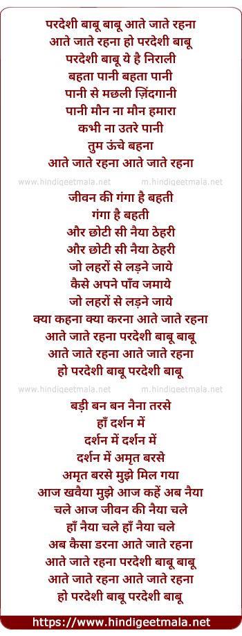 Poetic Translation - Lyrics of Pardesi Babu Aate Jate Rehna (Version 2) - परदेशी बाबू आते जाते रहना