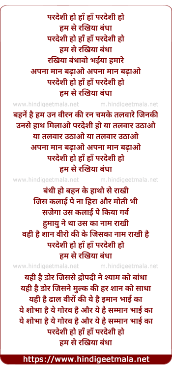 Lyrics of Pardesi Ho Ab Humse - परदेशी हो हाँ हाँ परदेशी हो