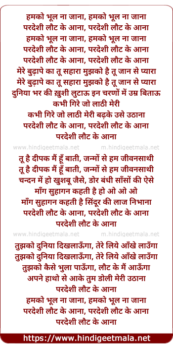 Lyrics of Pardesi Laut Ke Aana - परदेशी लौट के आना