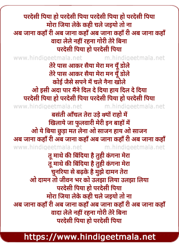 Lyrics of Pardesi Piya Ho Pardesi Piya - परदेसी पिया हो परदेसी पिया