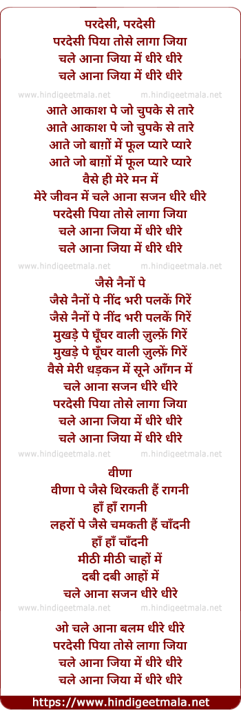 Lyrics of Pardesi Piya Tose Laga Jiya - परदेसी, परदेसी