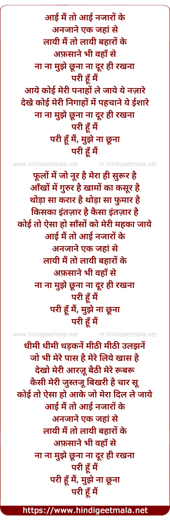 Lyrics of Pari Hoon Main - आई मैं तो आई नजारों के