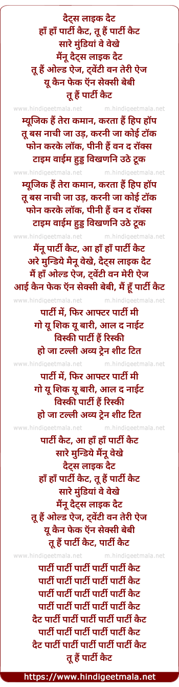 Poetic Translation - Lyrics of Party Cat - दैट्स लाइक दैट