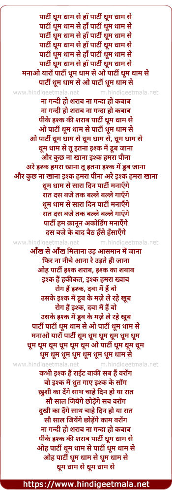 Lyrics of Party Dhoom Dhaam Se (Remix) - पार्टी धूम धाम से