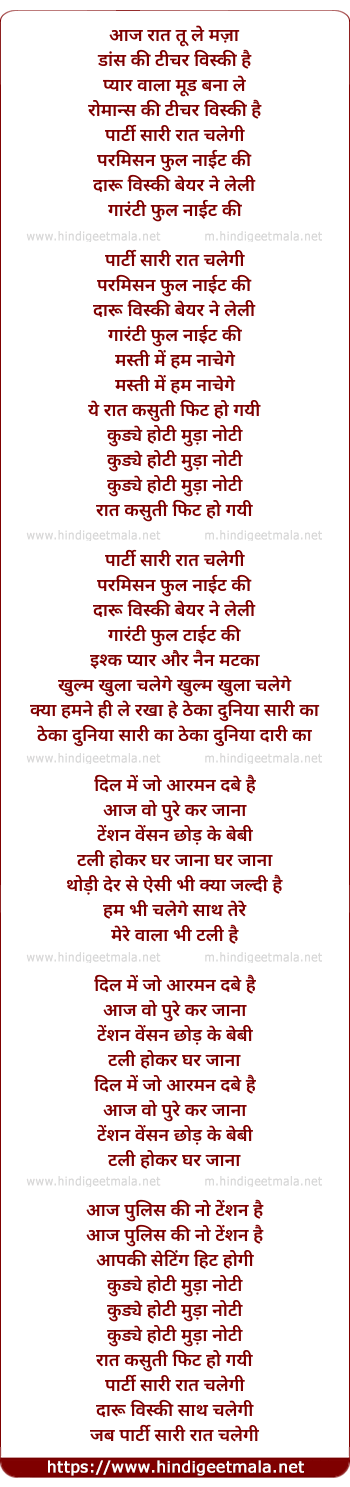 Lyrics of Party Saari Raat Chalegi - पार्टी सारी रात चलेगी