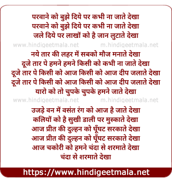 Lyrics of Parwane Ko Bujhe Diye Par - परवाने को बुझे दिये पर कभी ना जाते देखा