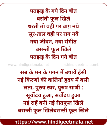 Lyrics of Patajhad Ke Gaye Din Bit Basanti Phul Khile - पतझड़ के गये दिन बीत