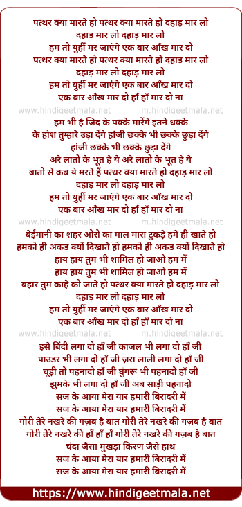 Lyrics of Pathar Kya Maarte Ho, Dhad Mar Lo - पत्थर क्या मारते हो, दहाड़ मार लो