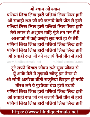 Lyrics of Patiyan Likh Likh Haari - ओ श्याम ओ श्याम