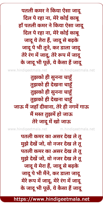 Lyrics of Patli Kamar - पतली कमर ने किया ऐसा जादू