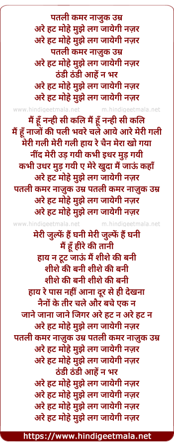 Lyrics of Patli Kamar Nazuk Umar Are Hat - पतली कमर नाजुक उम्र अरे हट