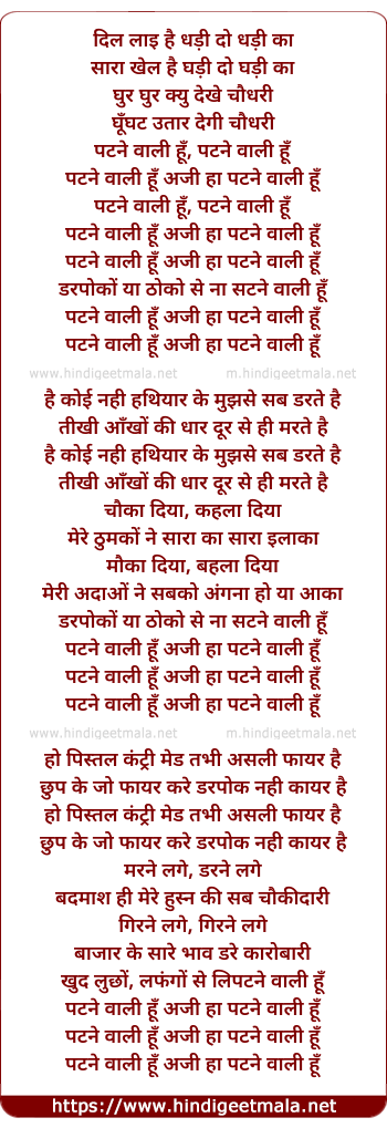 Lyrics of Patnewaali (Movie Version) - पटनेवाली