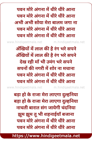 Lyrics of Pawan More Angna Me Dhire Dhire Aana - पवन मोरे अंगना में धीरे धीरे आना