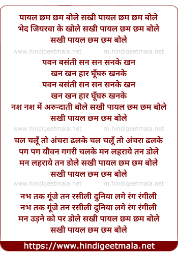 Lyrics of Payal Chham Chham Bole Sakhi - पायल छम छम बोले सखी