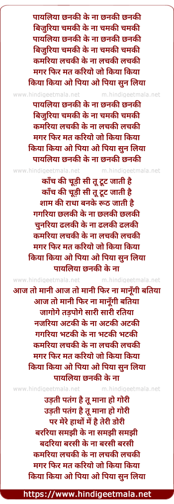 Lyrics of Payaliya Chhanki Ke Na - पायलिया छनकी के ना