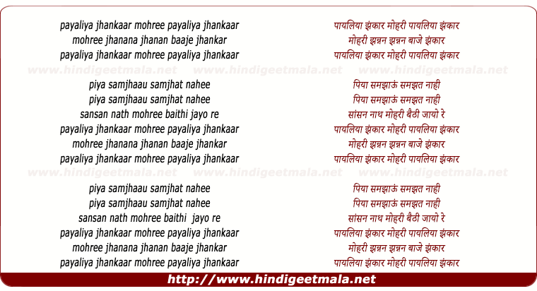 Comments for lyrics of song "Payaliya Jhankaar Mohree Payaliya Jhankaar"
