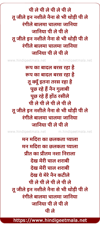Lyrics of Pee Le Pee Le Tu Jee Le - पी ले पी ले तू जी ले