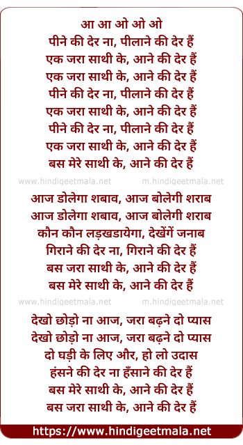 Lyrics of Peene Kii Der Hai - पीने की देर है