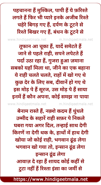 Lyrics of Pehchanna Hai Mushkil - पहचानना हैं मुश्किल, पापी हैं ये फ़रिश्ते