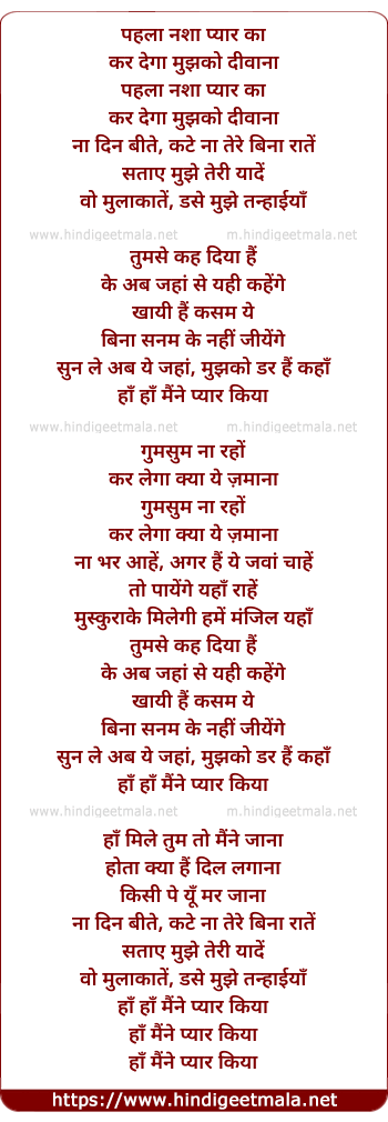 Lyrics of Pehla Nasha Pyar Ka - पहला नशा प्यार का