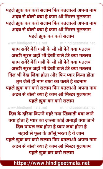 Lyrics of Pehle Jhuk Kar Karo Salaam Fir Batlaao Apna Naam - पहले झुक कर करो सलाम फिर बतलाओ अपना नाम