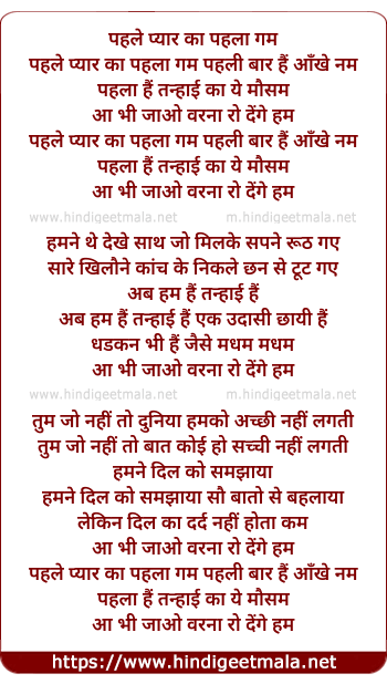 Lyrics of Pehle Pyar Ka Pehla Ghum - पहले प्यार का पहला गम