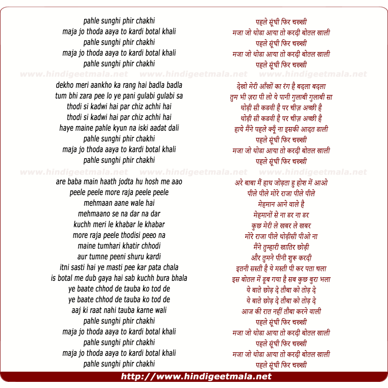 Lyrics of Pehle Suoongi Phir Chakhi, Maza Jo - पहले सूंघी फिर चख्खी, मजा जो