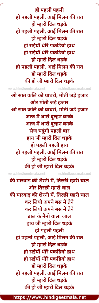 Lyrics of Pehli Pehli Aayi Milan Ki Raat - हो पहली पहली आई मिलन की रात