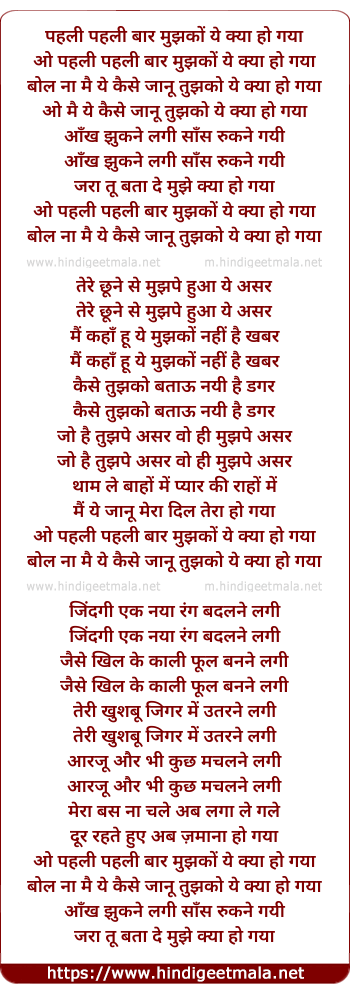 Lyrics of Pehli Pehli Bar Mujhko Ye Kya Ho Gaya - पहली पहली बार मुझकों ये क्या हो गया