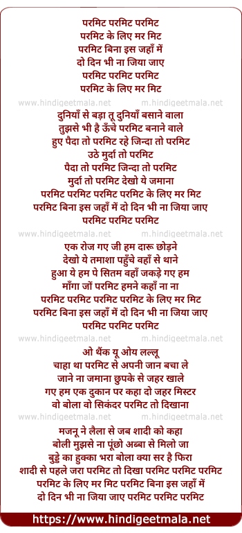 Lyrics of Permit Bina Is Jahan Me - परमिट बिना इस जहाँ में
