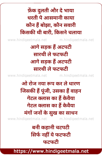 Lyrics of Phatphati - फटफटी