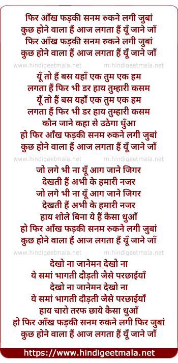 Lyrics of Phir Aankh Pharki Sanam - फिर आँख फड़की सनम