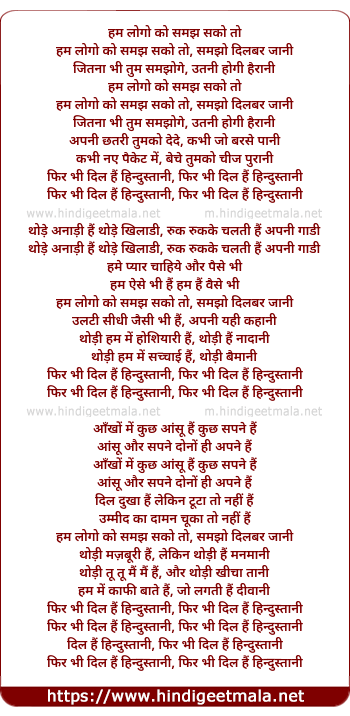 Lyrics of Phir Bhi Dil Hai Hindustani - फिर भी दिल हैं हिन्दुस्तानी