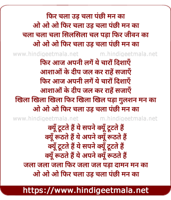 Lyrics of Phir Chalaa Ud Chalaa Panchhi Man Kaa - फिर चला उड़ चला पंछी मन का