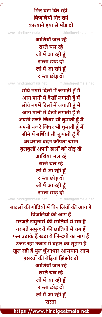 Lyrics of Phir Ghata Ghir Rahi - फिर घटा घिर रही