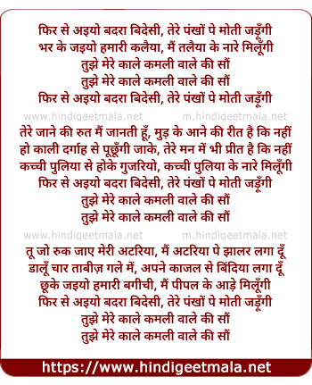 Lyrics of Phir Se Aaiyo Badra - फिर से अइयो बदरा