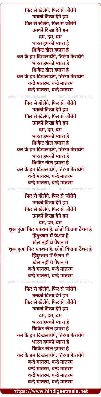 Lyrics of Phir Se Khelenge - फिर से खेलेंगे