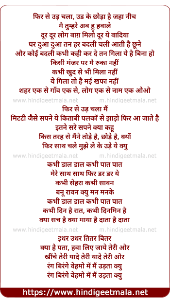 Lyrics of Phir Se Ud Chala - फिर से उड़ चला
