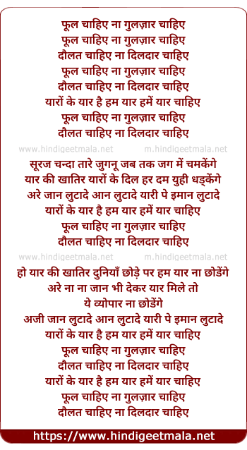 Lyrics of Phool Chahiye Na Gulzar Chahiye - फूल चाहिए ना गुलज़ार चाहिए