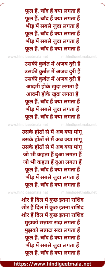 Lyrics of Phool Hai Chand Hai - फूल हैं, चाँद हैं क्या लगता हैं