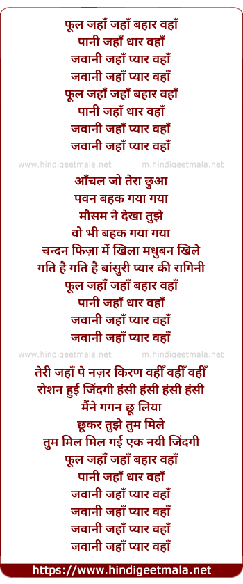 Lyrics of Phool Jahan Wahan Bahar - फूल जहाँ वहाँ बहार