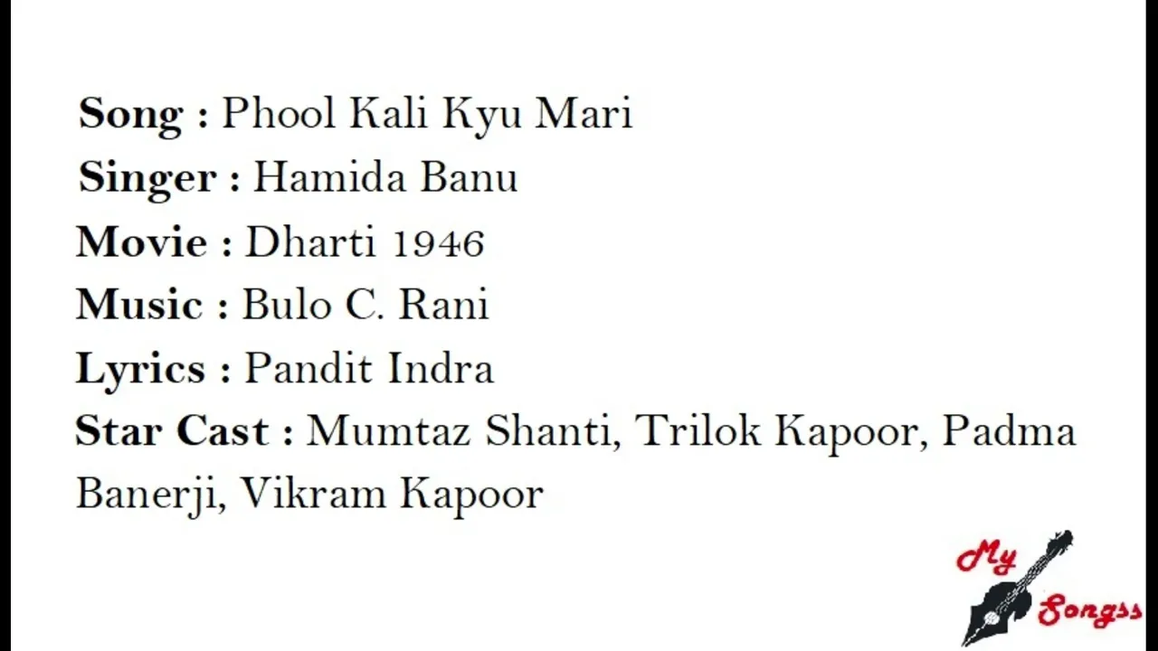 Film Cast Mumtaz Shanti, Trilok Kapoor, Padma Banerji, Vikram Kapoor
